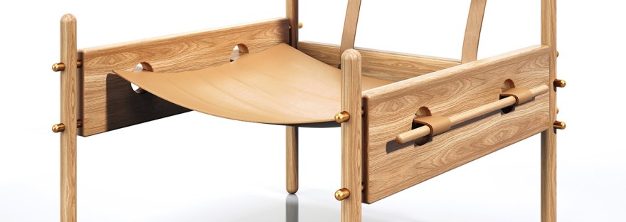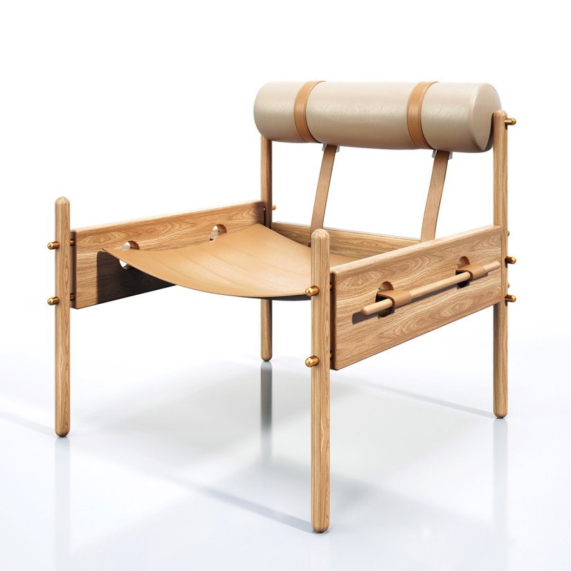Material: Madeira, latão, couro e espuma