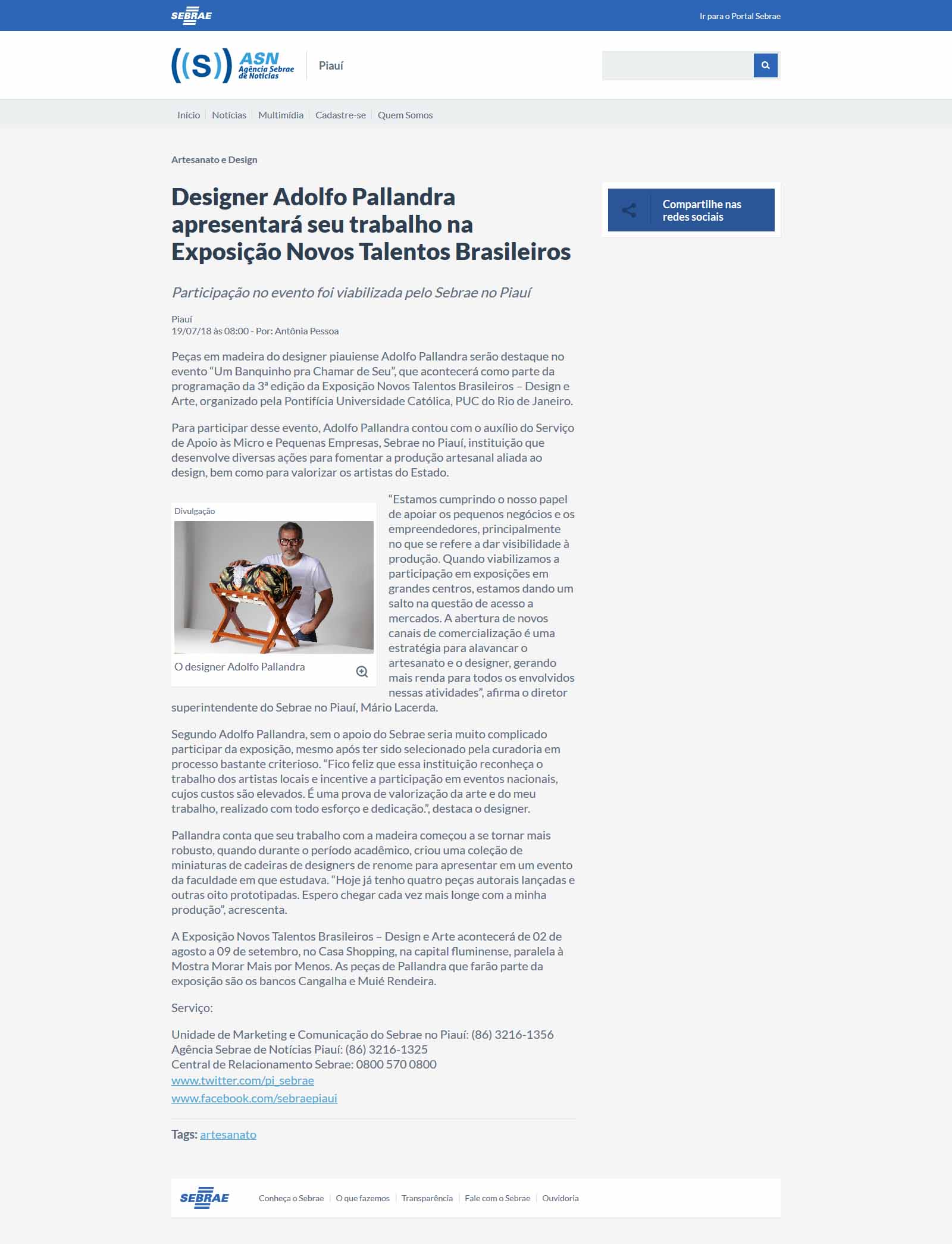 NOVOS TALENTOS BRASILEIROS no site da Agência Sebrae de Notícias do Piauí em 19 de julho de 2018 Curtir Carregando...